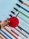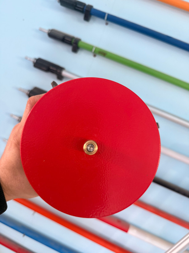 گردالومینیوم -قطر صفحه ۱۶۰ میلیمتر -ضخامت ۱۶ میلیمتر -رنگ قرمز چرمی الکترو استاتیک-مهره برنجی قابل تعویض در وسط همراه با پیچ استیل -پایه میلگرد آجدار ۱۰به طول ۱۷ و ارتفاع ۱۰ سانتیمتر